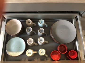 Geschirrhandtücher, Spülmittel, Gewürze und vieles mehr sind zu Ihrem Komfort vorhanden.