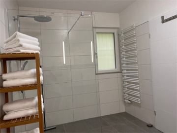 - Großzügiges Hauptbadezimmer mit ebenerdiger Regendusche (1,20 m x 1,20 m)